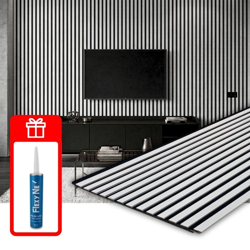 Акустичен панел от MDF 60x275см Бял + ПОДАРЪК: Монтажно лепило