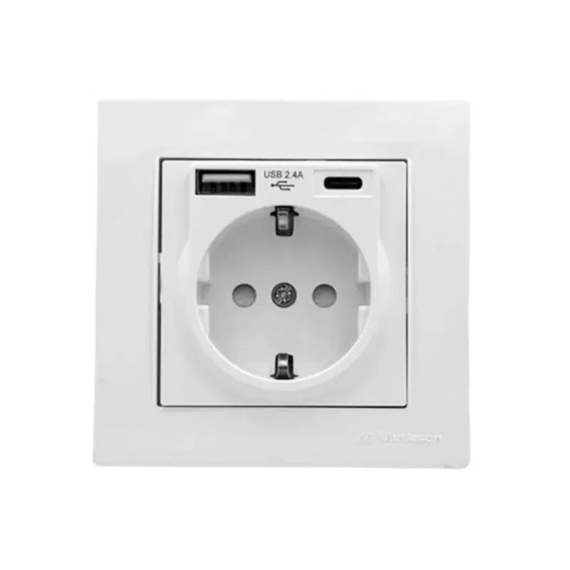 Контакт Usb A + C 16А с бързо зареждане Бял Rita Mutlusan