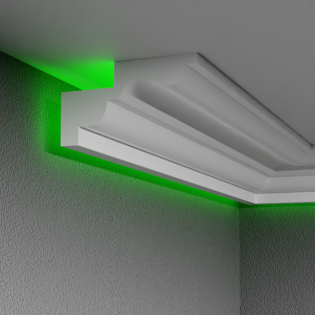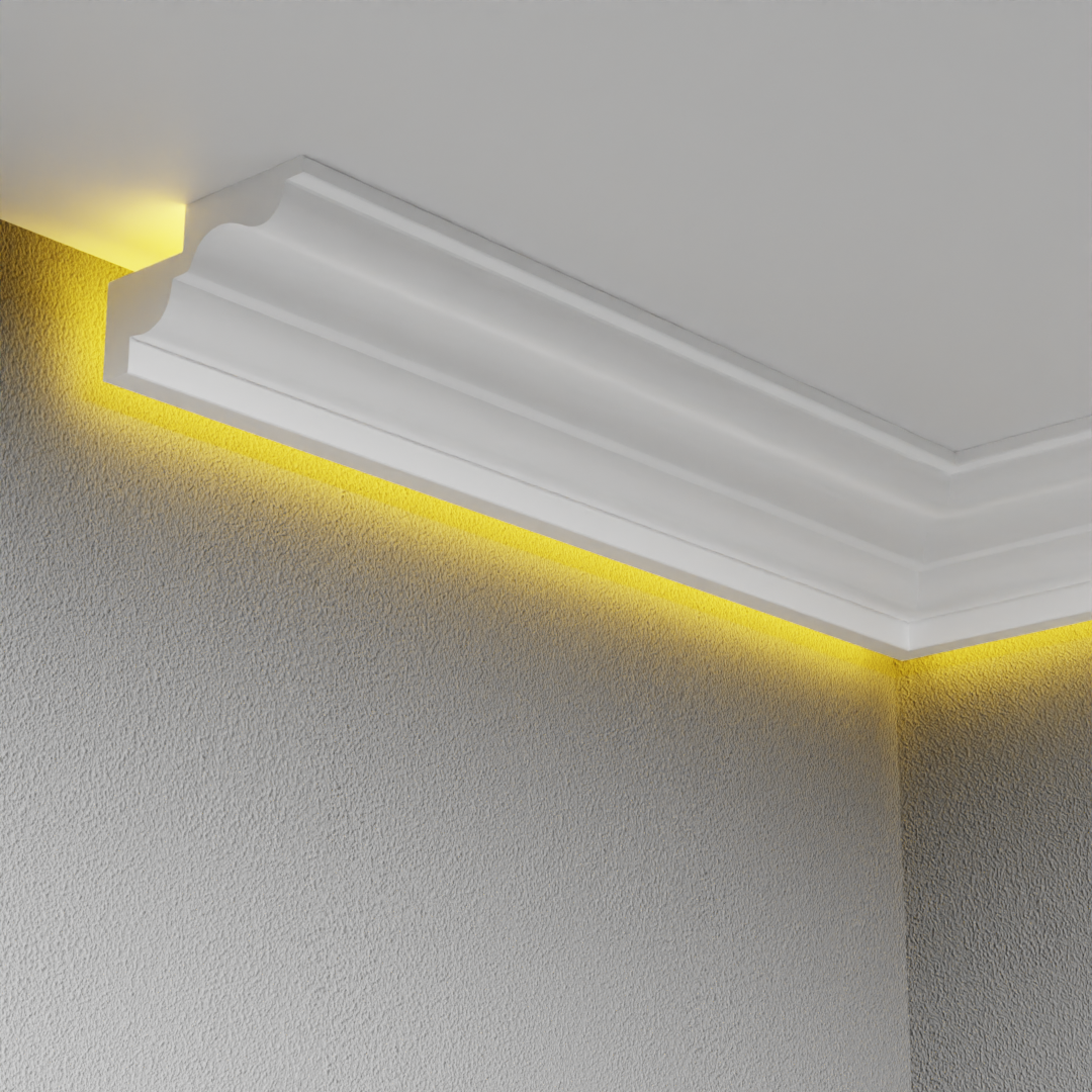 Този LED перваз е стилно и модерно решение за скрито осветление в интериора. Дизайнът му е изчистен с вълнообразна част. Продават се на пакети по 2 бройки.