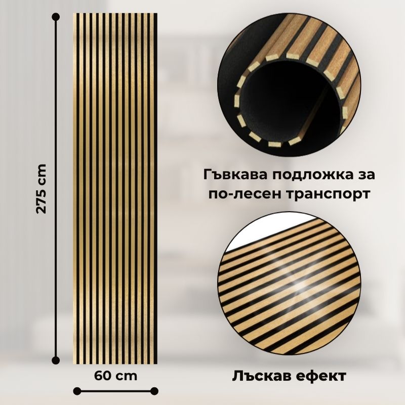 Акустичен панел от MDF 60x275см Голд + ПОДАРЪК: Монтажно лепило