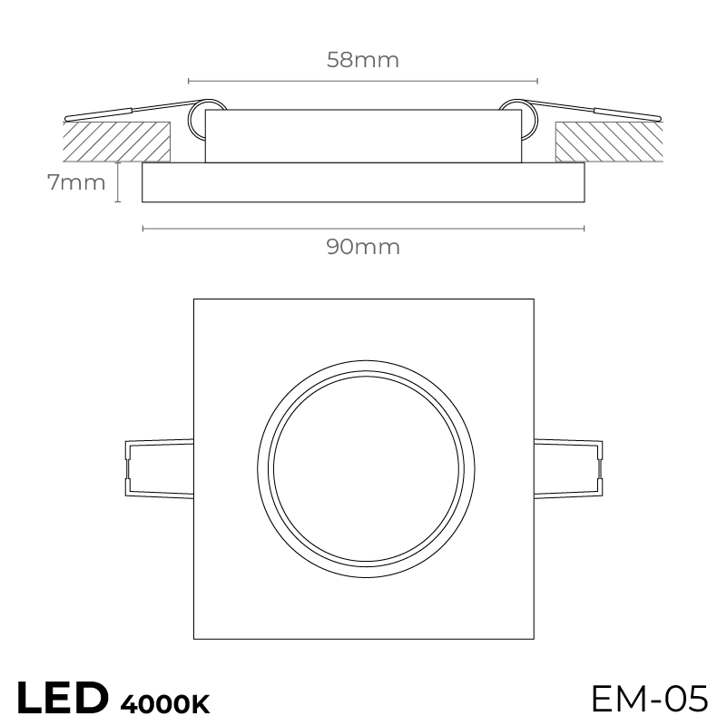 Алумиева луна стъкло квадрат - 4000K