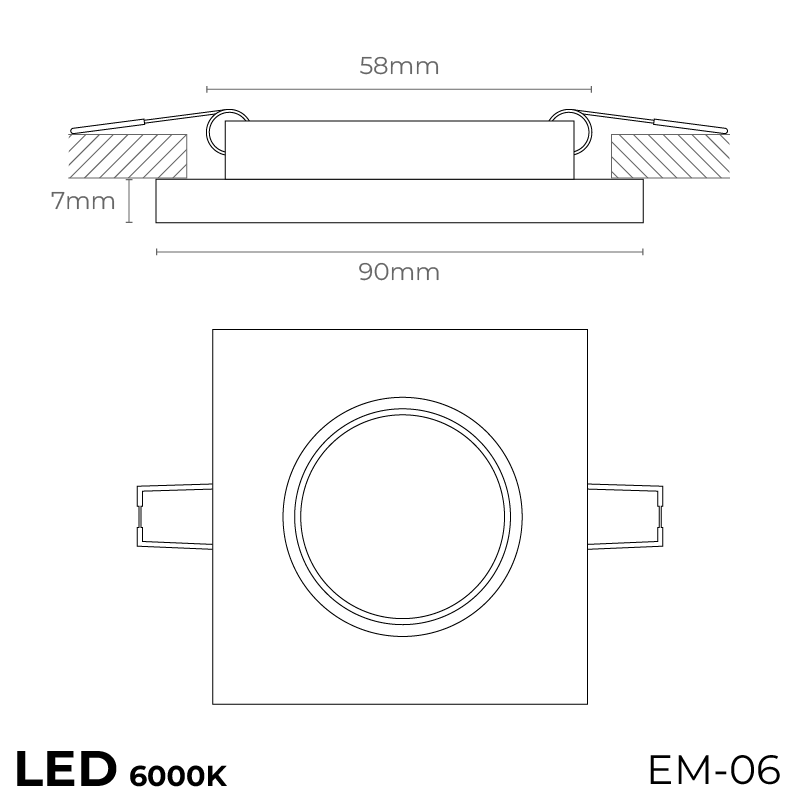 Алумиева луна стъкло квадрат - 6000K