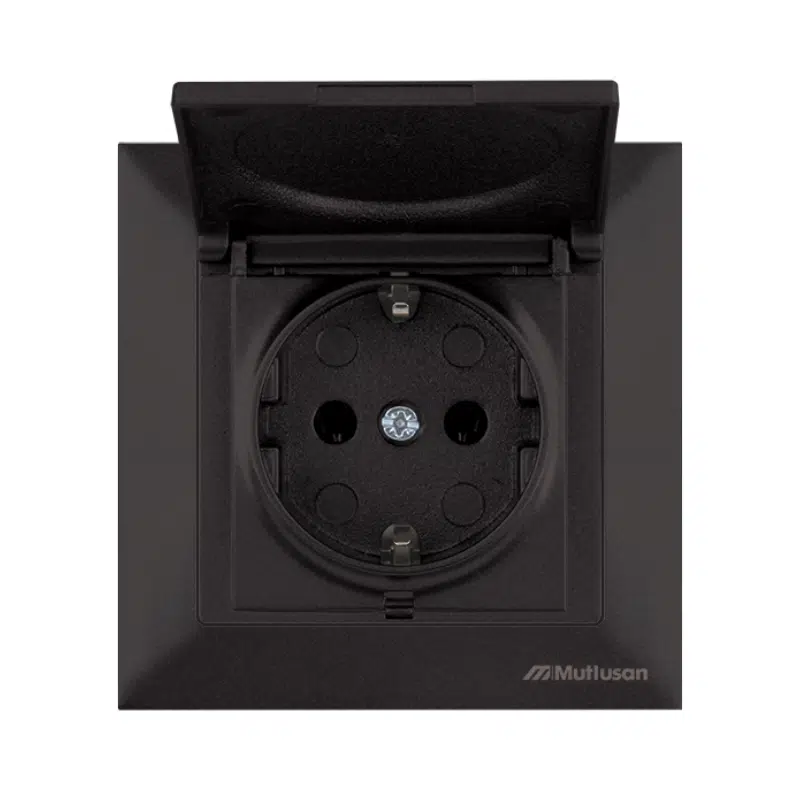Контакт шуко единичен с капак 16А черен Candela Mutlusan