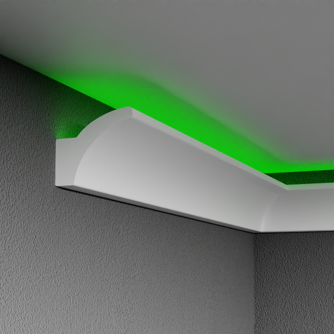 Този LED перваз е стилно и модерно решение за скрито осветление в интериора. Дизайнът му е изчистен с вълнообразна част. Продават се на пакети по 2 бройки.