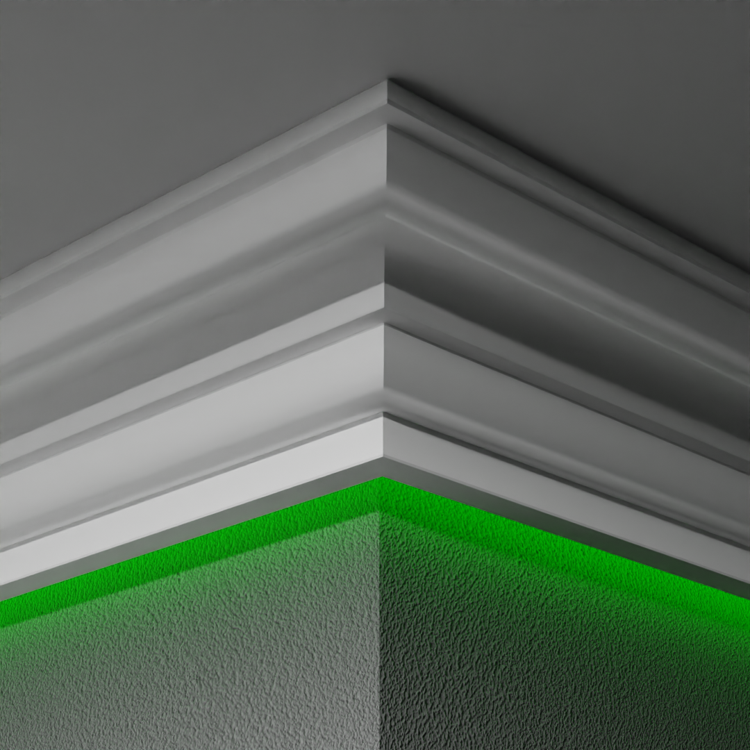 Този LED перваз е стилно и модерно решение за скрито осветление в интериора. Дизайнът му е изчистен с вълнообразна част. Продават се на пакети по 2 бройки.